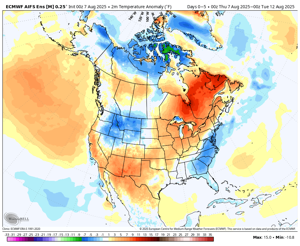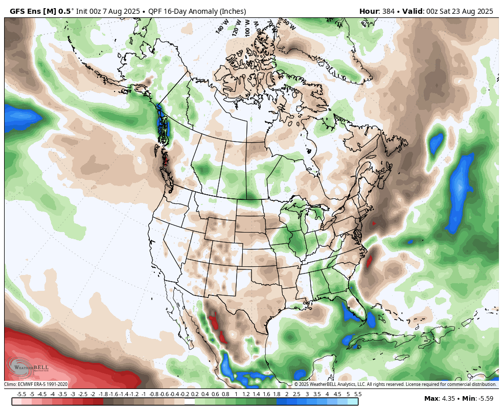 As we push forward, temperatures (and humidity levels) will return to much closer to what we’re accustomed to for August. The most persistent and significant warmth (relative to average) will be located across the Plains over the next couple of weeks.